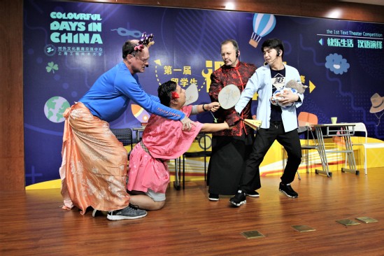 5月24日,我校国际交流处对外文化教育交流中心“快乐生活,汉语演绎”第一届课本剧表演大赛在我校长宁校区的多功能报告厅举行。