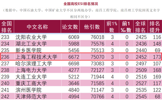 ESI is one of the key evaluation tools widely used worldwide to assess the international academic level and influence of universities, academic institutions, countries, or regions. The data for this release covers the period from January 1, 2014, to February 29, 2024. As of now, SUES has disciplines in engineering, materials science, and chemistry ranked among the top 1% globally in ESI, with global rankings of 736th, 618th, and 1069th respectively. Compared to March 2024, this represents an increase of 43 places, 47 places, and 89 places respectively.
