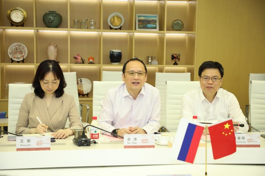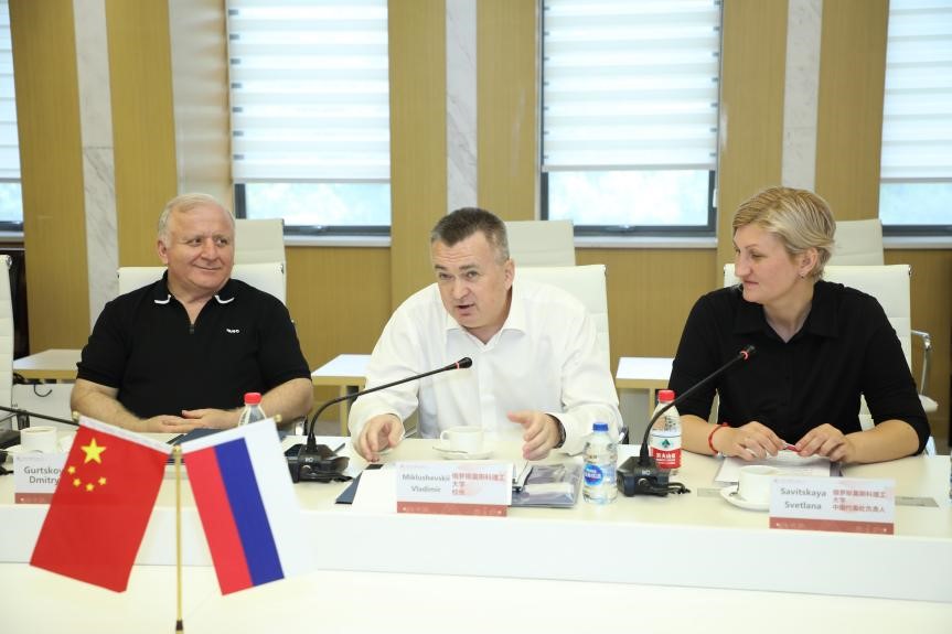 俞校长对Miklushevskii Vladimir校长一行表示热烈欢迎,他简要介绍了学校的院系设置、师生规模、学科特色、国际化发展等基本情况。俞校长指出,我校重视与俄罗斯大学的交流,希望通过双方合作,实现优质教育资源的共享。我校目前正在申报机械工程等专业方向的博士点,在机械工程、电子电气工程等领域有较强的教学科研实力,与莫斯科理工大学在学科建设和科研方向上相似度较高,期待通过此次访问,推动两校的务实合作。