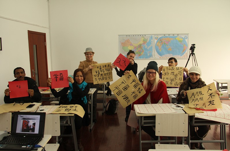 | 11月27日中午,仙霞路校区教学楼517教室内举行了一场别开生面的午间中国文化系列讲座——《汉字和书法入门》。讲座由对外文化教育交流中心的方芳老师主讲,并请专业书法老师做书法指导。参加讲座的都是来自欧美各国的学生,对汉字充满好奇和兴趣。 方老师由浅入深地对汉字的起源、结构和发展做了精彩的介绍,循循善诱的讲述以及生动的PPT演示,引领金发碧眼的学生们在想象的空间里体会汉字之精妙。老师的书法秀更让学生们在收放自如的书法中感受汉字的神韵,学生们还现场临摹自己喜欢的汉字,开心地相互展示自己的第一件书法作品。 午间中国文化系列讲座是对外文化教育交流中心自本学期开始为留学生们开设的全英语讲座,《汉字和书法入门》利用午间短短一个小时给学生们打开了神秘汉字的大门,令学生们大开眼界,啧啧称奇。结束时大家意犹未尽,期待着下一场午间系列讲座。