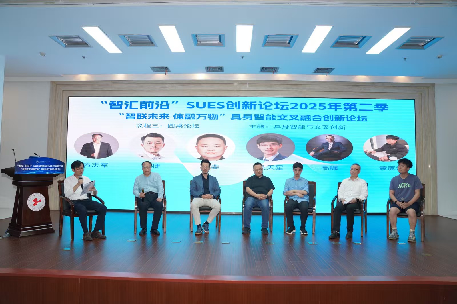 On June 19th, the Wisdom Gathering at the Frontier SUES Innovation Forum, Second Chapter of 2025—an Innovation Forum on Cross-disciplinary Integration of Embodied Intelligence with the theme of Connecting Intelligence to the Future, Integrating Bodies into All Things—was successfully held at SUES. Vice President Xu Kaiyu, Deputy Secretary-General of the China Computer Federation (CCF) Shu Qingshan, Professor Han Weili from School of Computer Science and Technology at Fudan University and Chairman of the CCF Shanghai Member Activity Center, as well as experts from the Institute of Automation, Chinese Academy of Sciences, Tongji University, Southeast University, Dong Hua University, and renowned industry enterprises attended the event. The forum was jointly hosted by Li Yuanyuan, Dean of School of Electronic and Electrical Engineering, Gao Yongbin, Vice Dean of the same School, and Wang Meng, Associate Professor from College of Design and Innovation at Tongji University.