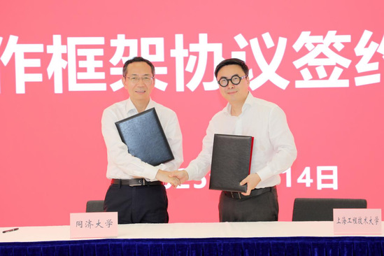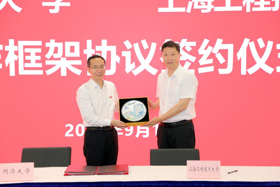 9月14日上午,我校与同济大学合作框架协议签约仪式在同济大学四平路校区中法中心举行。同济大学校长、中国科学院院士杨金龙,上海工程技术大学党委书记李江,校长娄永琪,党委常委、副校长夏春明,同济大学校长助理、科学技术研究院院长冯世进以及两校相关职能部门负责人出席活动。活动由同济大学党委常委、副校长李翔宁主持。