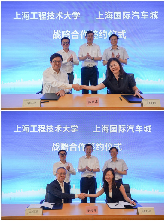 8月21日,学校与上海国际汽车城(集团)有限公司战略合作协议签约仪式在上海国际汽车城大厦隆重举行。校长娄永琪,副校长夏春明,嘉定区人大常委会副主任、区总工会主席陆强,中国电动汽车百人会副理事长兼秘书长张永伟,上海国际汽车城(集团)有限公司总经理潘晓红、副总经理管清平、陈杰等出席签约仪式。仪式由上海智行慧谷建设发展有限公司总经理徐婷婷主持。