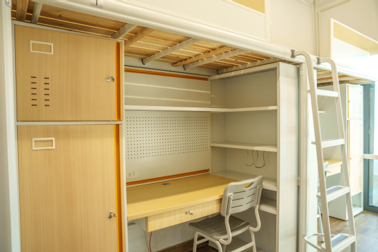 Each bedroom is equipped with desks and chairs, single beds and cabinets. SUES also provides water dispensers, bottled water (RMB 12 per bottle), brooms, dustpans and dustbins for each room. The dormitory building also has: health scale, microwave oven, convenience service box with band-aid, iodine cotton, sewing kit, etc., waste battery recycling box.