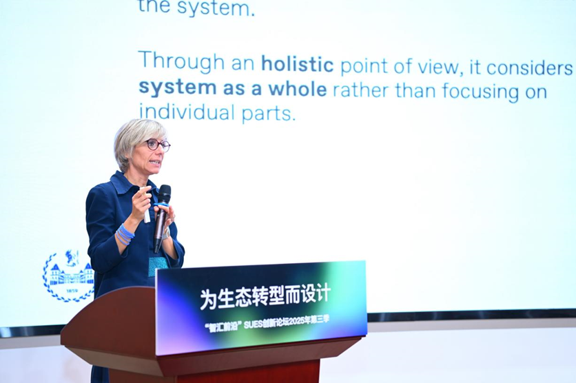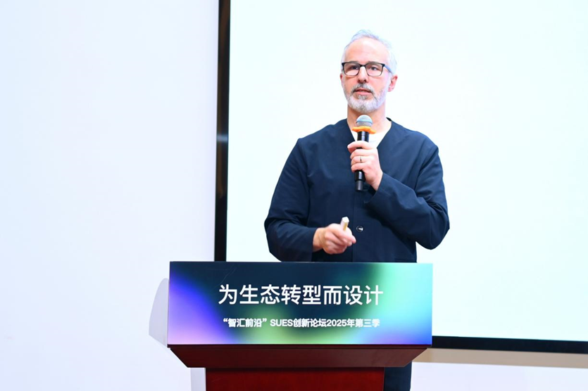 On September 27, Intelligence Frontiers SUES Innovation Symposium 2025 Series III themed Designing Sustainable Futures, was successfully held at the lecture hall of the Industry-Education Integration Building on Changning Campus of Shanghai University of Engineering Science (SUES). The symposium was jointly organized by SUES and Shanhai International Design Think Tank, and hosted by School of Art and Design and International Institute of Creative Design. It brought together SUES President Lou Yongqi, experts and scholars from the global design community, and faculty members, students, and guests, with a total number of over 300. Professor Feng Lu from School of Art and Design, also the principal architect of Wuyang Architecture Studio, was invited to host the symposium, guiding participants in exploring the systemic development and actionable pathways toward a sustainable future.