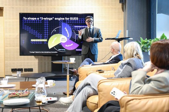 91日,代表团首先到访芬兰阿尔托大学。娄永琪与芬兰阿尔托大学校长Ilkka Niemelä、助理副校长Hannu Seristö、战略发展总监Raili Pönni、国际合作负责人Kirsi Kettula、艺术设计与建筑学院院长Tuomas Auvinen、国际合作高级顾问Jérôme Rickmann等举行会谈。娄永琪全面介绍了上海工程技术大学的历史沿革、发展愿景、院系专业设置、产教融合特色、“工程、管理、设计”三旋翼学科交叉模式、科研成果、国际合作与校园文化等情况,阐释了学校在可持续发展、教学转型及创新生态营造方面的探索与实践。双方充分讨论了在学科交叉人才培养、设计思维和教育创新、科研合作、师生互访等方面的合作可能。代表团还参访了阿尔托大学设计工厂(Aalto Design Factory),与相关学院负责人就联合开展“三旋翼”跨学科国际项目合作进行了深入交流,并应邀出席了阿尔托大学2025-2026学年开学典礼,为推动上工程进一步深化教育国际化合作提供了新启发。