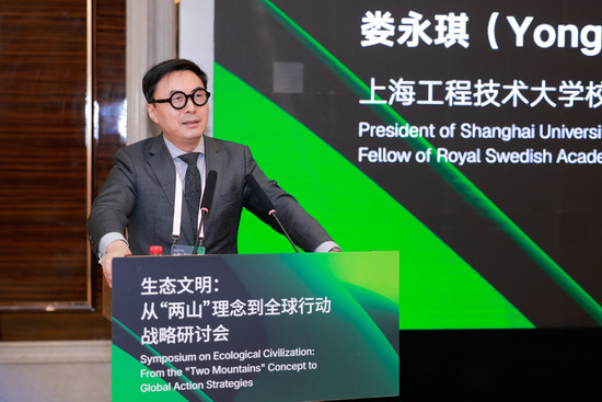 Lou Yongqi expressed that ecological civilization construction is not merely a concept but a comprehensive transformation involving industry, society, and education. Throughout history, every era's robust economy has been built upon its core infrastructure, such as steel and oil in the past, and the internet and artificial intelligence today. When human development reaches environmental limits, only by creating industrial and organizational economic forces commensurate with the problems can fundamental breakthroughs be achieved, which is the profound economic connotation of the Two Mountains concept. He emphasized that the economy of repairing the Earth will be the most robust in the future. Shanghai University of Engineering Science is committed to building a world-class application-oriented and innovation-driven university guided by sustainability, encouraging students to think about how to change the world from their first day on campus.