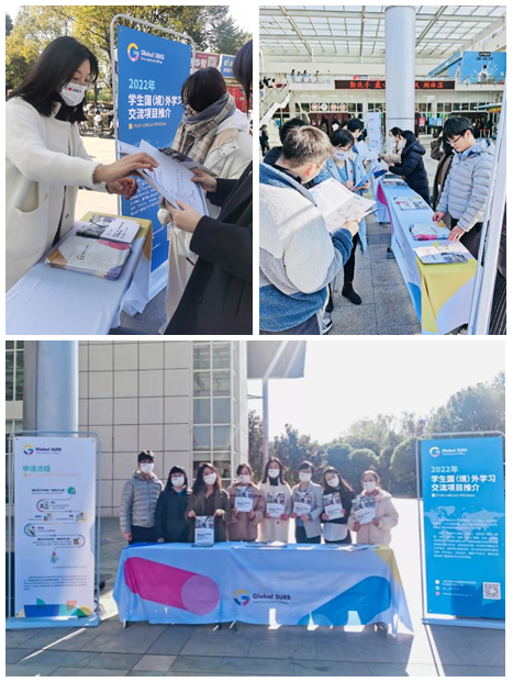 12月13日、14日中午,机关党委国交处党支部在第一食堂、第二食堂门口举行了2022年学生国(境)外学习交流项目推介活动。活动介绍了近年来我校学生国(境)外学习交流项目概况,发布了学生国(境)外学习交流项目共计94项,宣传了学校2022年各类线上、线下国(境)外学习交流项目申请流程、时间安排及资助政策等。