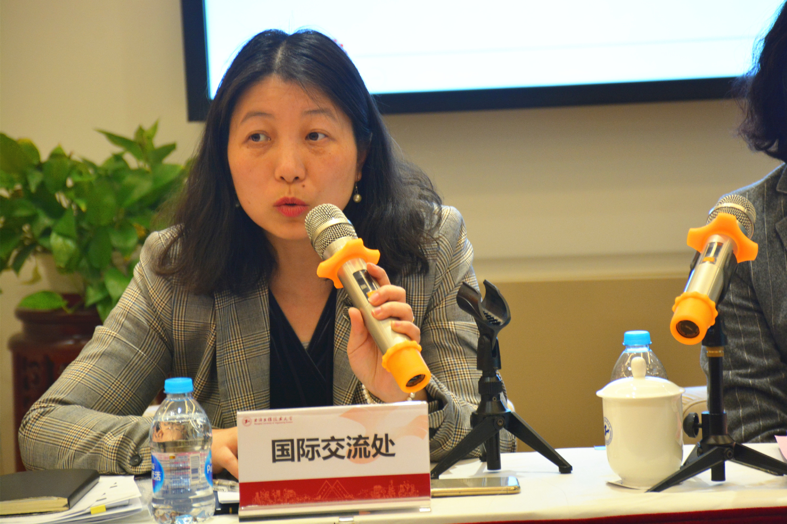 国际交流处钱慧敏处长回顾了学校2018年国际合作与交流的主要工作,并汇报了2019年国际合作与交流的工作思路和重要工作设想。国际交流处张宇清副处长和张忠魁副处长分别就国际合作与交流的各项工作的政策要求、具体计划和服务措施等方面向与会人员做了汇报。
