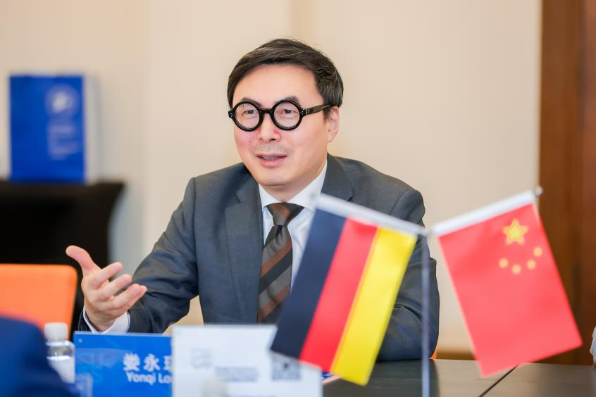President Lou Yongqi held cooperation talks with the delegation at the SUES-DIIS Joint Innovation Center. During the meeting, President Lou elaborated on SUES' innovative 3-Wings concept, which integrates Engineering, Management, and Design, as well as its initiatives in interdisciplinary integration, innovation and entrepreneurship education, and internationalization. He proposed exploring collaborative models with THWS in several shared areas of strength, such as artificial intelligence, robotics, design, and management, aiming to jointly build a high-level platform for Sino-German cooperation in applied technology education.