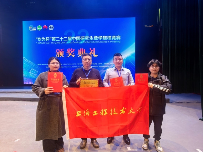 A total of 723 postgraduate students from SUES, forming 241 teams, participated. Ultimately, 84 teams achieved outstanding results, securing 2 First Prizes, 32 Second Prizes, and 50 Third Prizes. SUES ranked 15th nationally in terms of total awards. The team of Liu Hongyu, Yu Mingxu, and Meng Fanrong, guided by Professor Zhang Huiyan from School of Mathematics, Physics and Statistics, and the team of Chen Zhikang, Pan Xiaoqiu, and Yuan Jiaying, guided by Professor Li Yuanyuan from School of Electronic and Electrical Engineering, each won a First Prize. SUES was recognized as an Outstanding Organization Unit, and Professor Zhou Lei from School of Mathematics, Physics and Statistics received the Outstanding Individual honor.