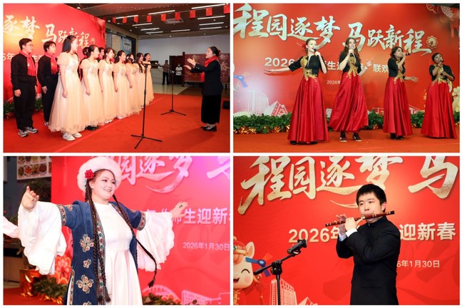 “Chengle · Warm Encounters”: Traditional cultural activities such as writing Spring Festival couplets, paper-cutting of Fu characters, and intangible cultural heritage crafts allowed faculty and students to immerse themselves in the unique charm of Chinese New Year customs. A special exhibition of student innovation achievements in science and technology enabled participants to experience creative vitality up close. “Chenyun · Five Continents Welcoming Spring”: Interactive segments such as festive check-ins, fun sports activities, Chinese New Year messages, and cross-national greeting stations helped bridge gaps among students and faculty from different countries and academic backgrounds, drawing them closer through laughter and creating bonds of reunion.