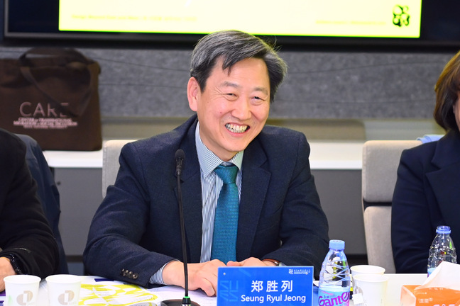 郑胜列对我校的热情接待表示诚挚感谢,并介绍了韩国国民大学的发展历程和办学理念。他指出,国民大学在工程技术、产教融合和设计领域具有显著优势,倡导企业家精神,鼓励勇于尝试和持续创新,相关实践在韩国高校中处于领先地位。郑胜列表示,双方在办学理念、学科布局和实践导向方面高度相似,合作空间广阔,期待两校在工程技术、设计创新及人工智能等新兴领域开展强强联合,推动合作不断取得实质性成果。他邀请娄永琪及我校师生共同参与“DBEW Award 2026”国际设计大赛,共同推动青年设计创新。