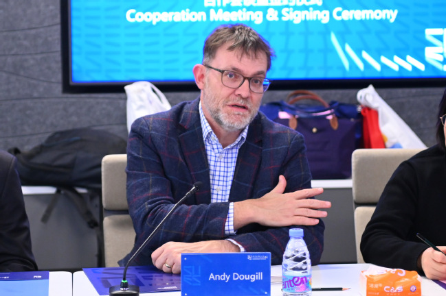 Andy Dougill对我校的热情接待表示感谢。他高度赞赏我校鲜明的应用创新型办学定位与突出的产教融合成果,并表示约克大学高度重视与上海工程技术大学的伙伴关系。他期待以协议签署为新起点,充分发挥两校在工程、管理等领域的学科优势,共同推进高质量国际化人才培养与前沿科研合作。