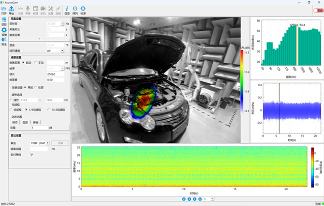 The team’s independently developed AcoustCAM acoustic imaging system integrates more than ten years of algorithm research, covering modules such as general 2D noise imaging, through noise imaging, and spherical array 3D spatial noise imaging. It is applicable to noise contribution analysis, fast noise source identification and localization, and abnormal sound source localization for various industrial equipment and transportation equipment.