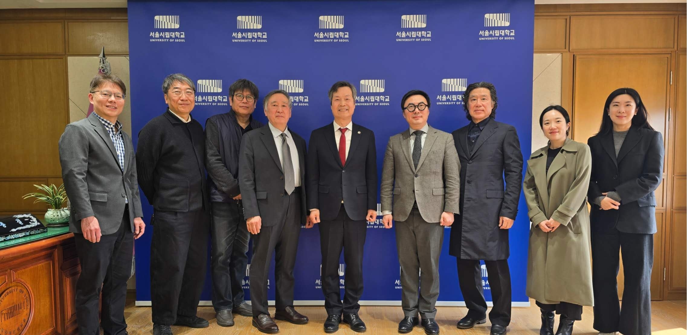 On March 27, President Lou Yongqi met with WON Yongkul, President of the University of Seoul, along with PYO Minchan, Vice President of the University of Seoul, and KIM Suk, Dean of College of Art. The discussions focused on promoting inter-university cooperation, advancing design disciplines, and fostering international talent. The delegation also toured the University of Seoul campus, gaining further insights into the current state of higher education development in South Korea.