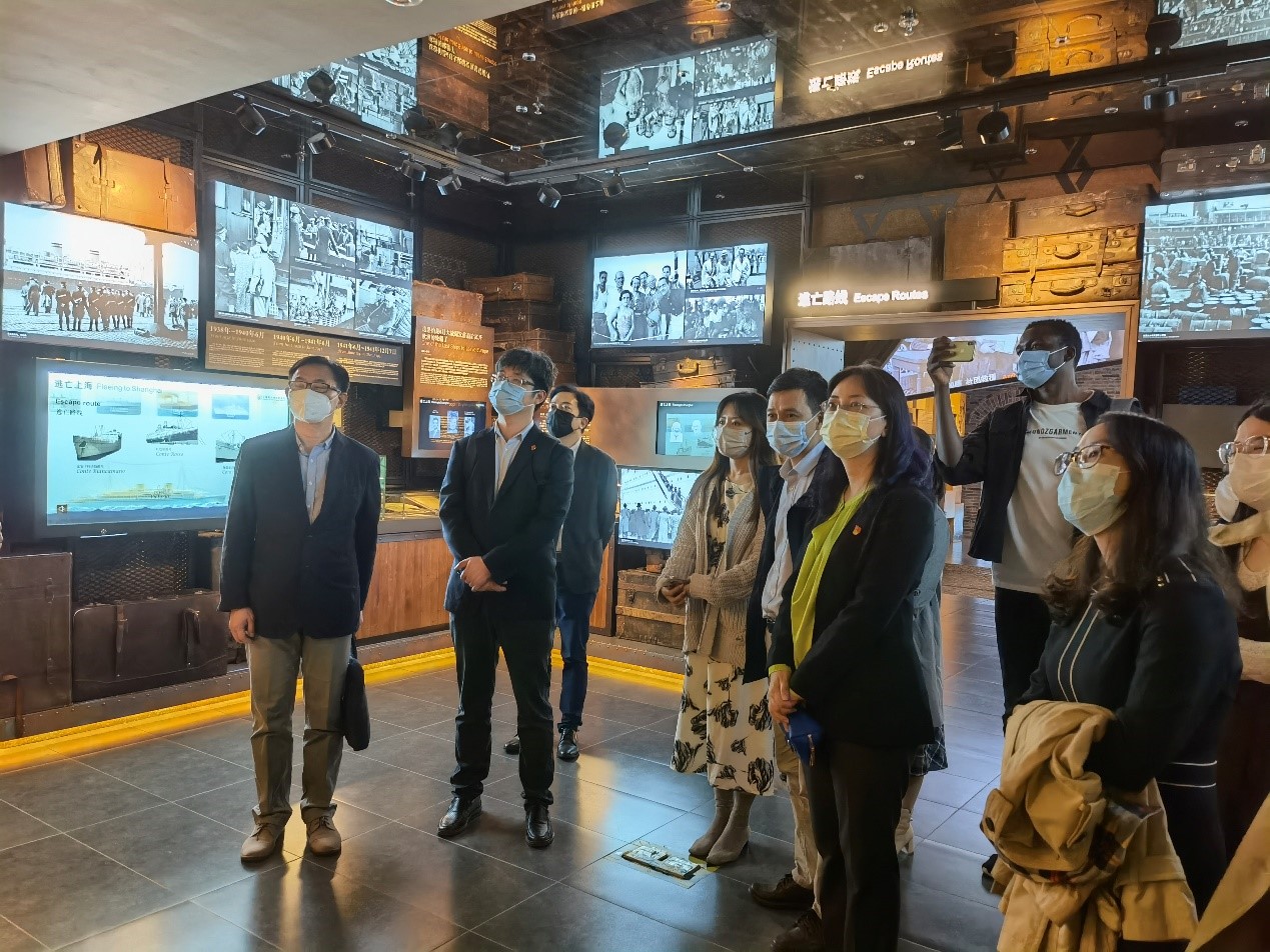 王勤处长感谢上海犹太难民纪念馆为我校提供志愿服务平台。上海犹太难民纪念馆珍藏的历史展现了中华民族宽广的胸怀以及中国人民与犹太人民的深厚情谊。希望我校教师以此次参观学习为契机,深入学习贯彻二十大精神,思考落实中国式现代化建设;希望国际学生以今后的志愿服务为抓手,在学校和纪念馆的共同指引下,跨越语言和文化,传递关爱,更好地参与上海的城市建设,继承和发扬上海的城市精神,建设上海工程技术大学国际志愿者品牌队伍,用实际行动让市民感受到上海工程技术大学志愿者就在你身边。