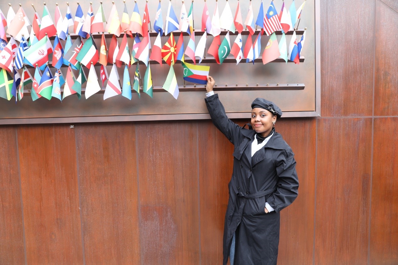 志愿者不分国籍,不分年龄,只要有一种乐于给予他人的信念,就可以担当起这份职责。我校电子电气学院大三学生纳米(Michel Naoumi Marcy)作为国际学生志愿者代表发言。她来自科摩罗,也是我校疫情防控的校园志愿者。她说:“在志愿服务的路上,今天是我的新起点。城市让生活更美好。志愿者让城市充满爱。”作为第一位访问犹太难民纪念馆的科摩罗友人,陈馆长为纳米的到来插上了该国国旗。