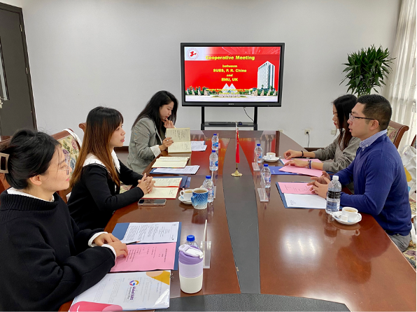 2022年11月18日,英国爱丁堡龙比亚大学亚太区国际合作招生主任Joe Zhou,中国区招生主任Carina Liao一行来访我校,我校国际合作与交流处副处长周晓舟及相关工作人员接待了来访客人。