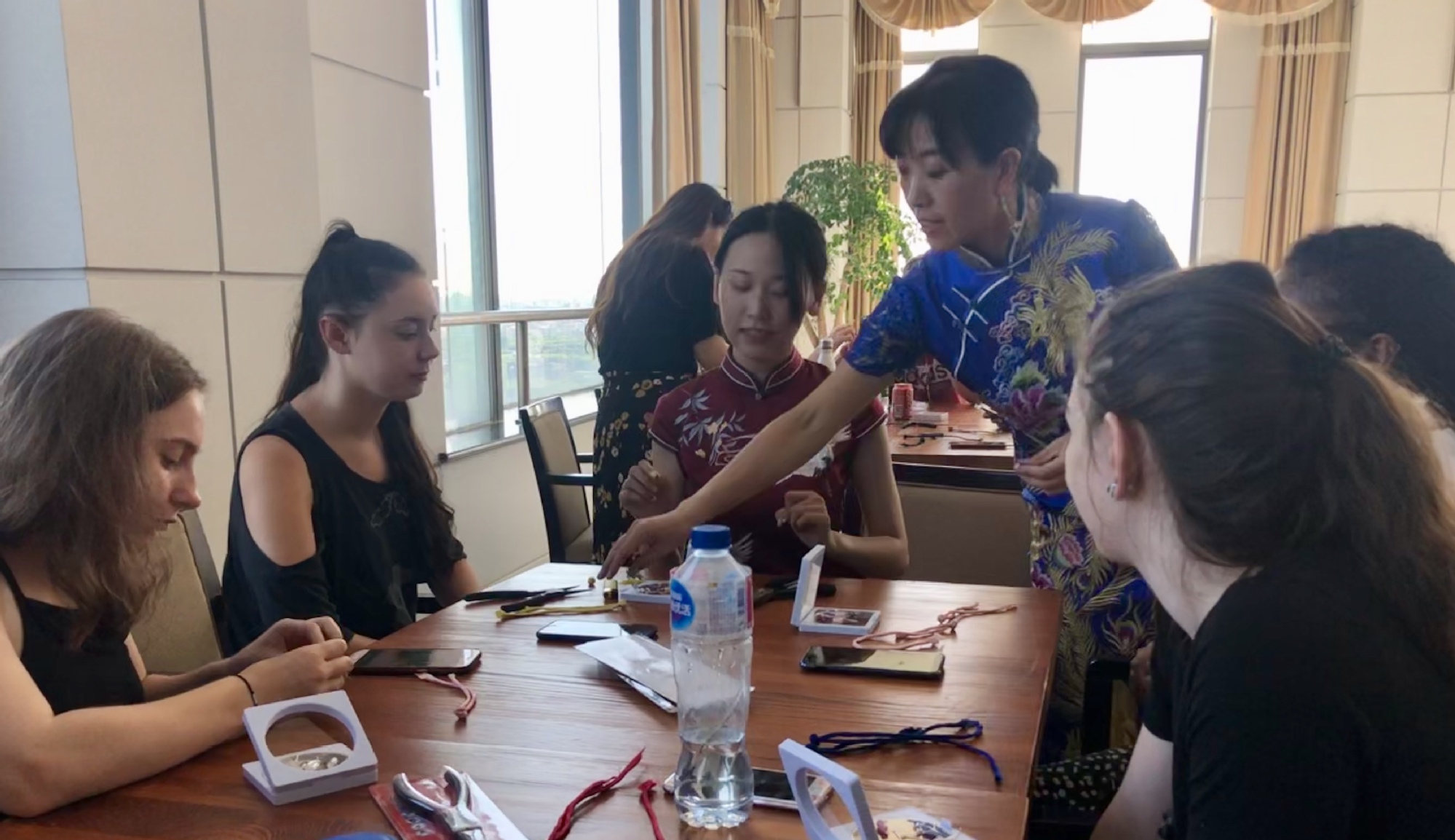欢迎仪式后,英国邓迪大学师生代表团一行参观了我校航空运输学院(飞行学院)实验室、服装工程学院学习工场,并在我校服装工程学院专业老师的指导下,体验了中国盘扣的手工制作,亲身体会了中国灿烂精美的传统文化。