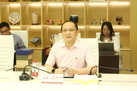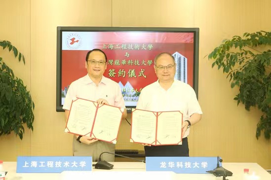 On July 27, Ge Zixiang, President of Lunghwa University of Science and Technology (LHU), Taiwan Province, and his delegation visited SUES. President Yu Tao received the visiting guests at Conference Room 204 of the Administrative Building, and the two sides discussed the development of academic cooperation and exchanges between the two universities. Heads of the President’s Office, the Office for Hong Kong, Macao and Taiwan Affairs, and the Office for Students’ Affairs attended the event.