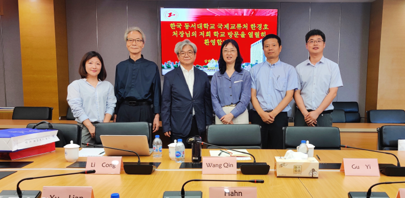 8月9日,韩国东西大学国际处处长韩京镐一行到访我校。国际合作与交流处处长王勤、副处长李丛,国际创意设计学院院长顾艺、韩方院长金锺琪参加了合作会谈。