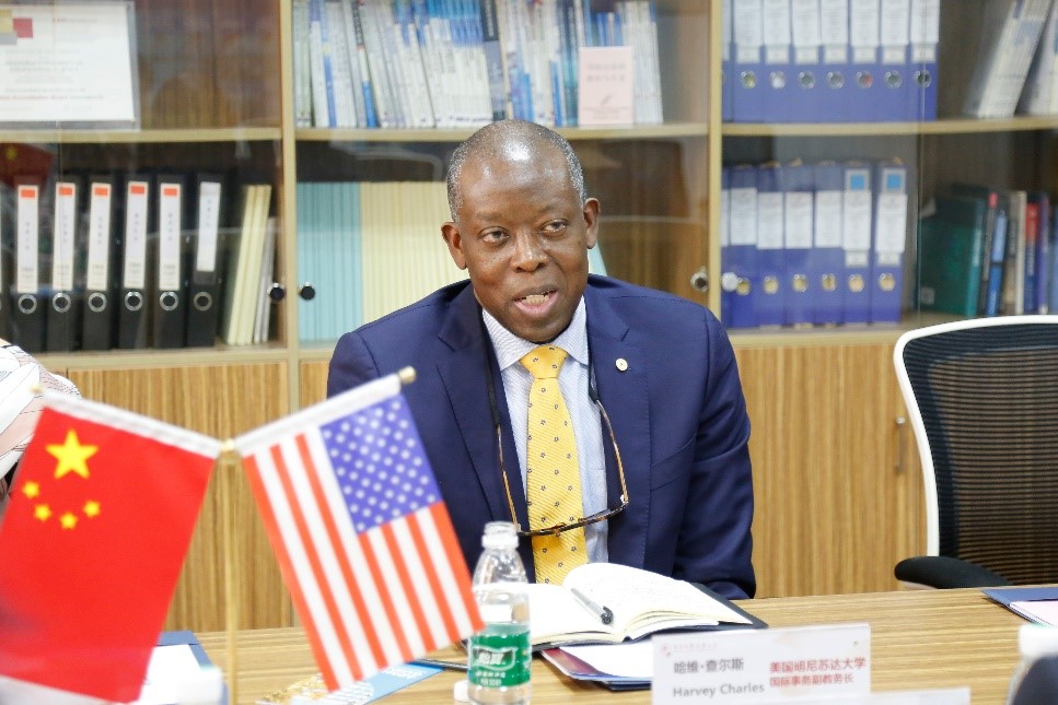 Harvey Charles副教务长对我校的热情接待表达了由衷的感谢。他从明尼苏达大学的发展历史、办学理念及特色、教学科研成果、国际交流等方面对学校作了全面的介绍,他强调,明尼苏达大学一直以来在国际教育领域享有卓越声誉,他期待通过此次会晤,加强双方联系,通过协作努力,共同实现卓越。