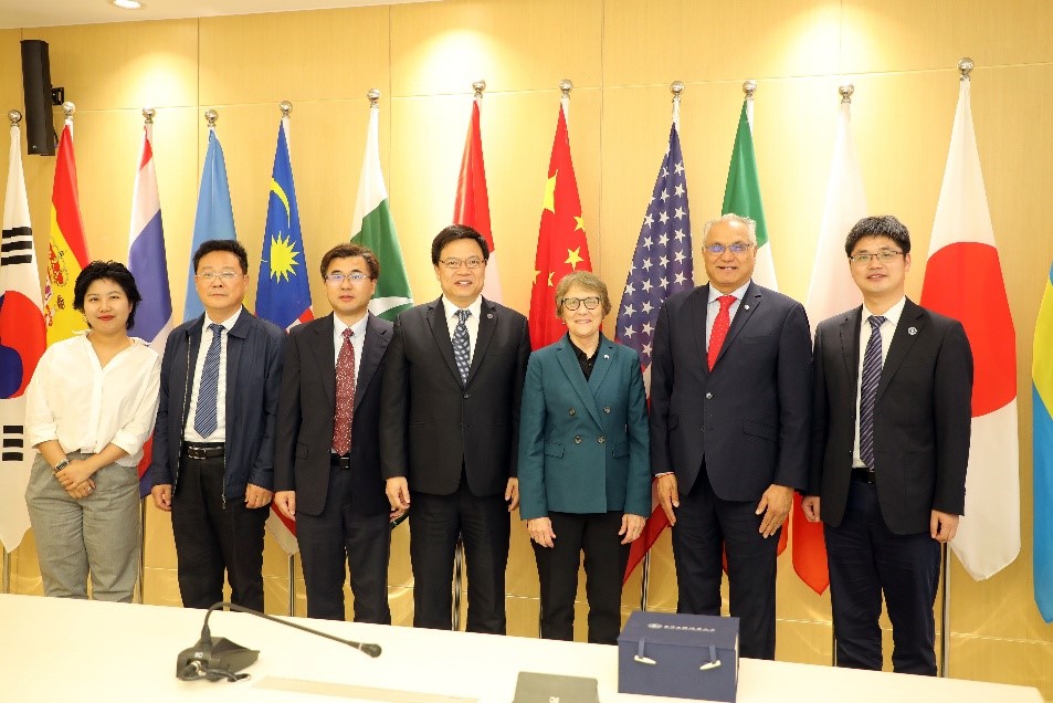 圣克劳德州立大学Robbyn Wacker校长感谢我校的热情接待,赞赏了我校五年来日新月异的变化。她表示,尽管疫情期间双方的国际往来受到一定的影响,我们仍然在学科建设、科研发展和产业合作等方面取得了长足的进步及合作成果。她特别指出,在复杂多变的国际环境里,高等教育是跨文化交流的桥梁,相信基于双方坚实的合作基础和各自深厚的专业积淀,两校未来合作大有可为。