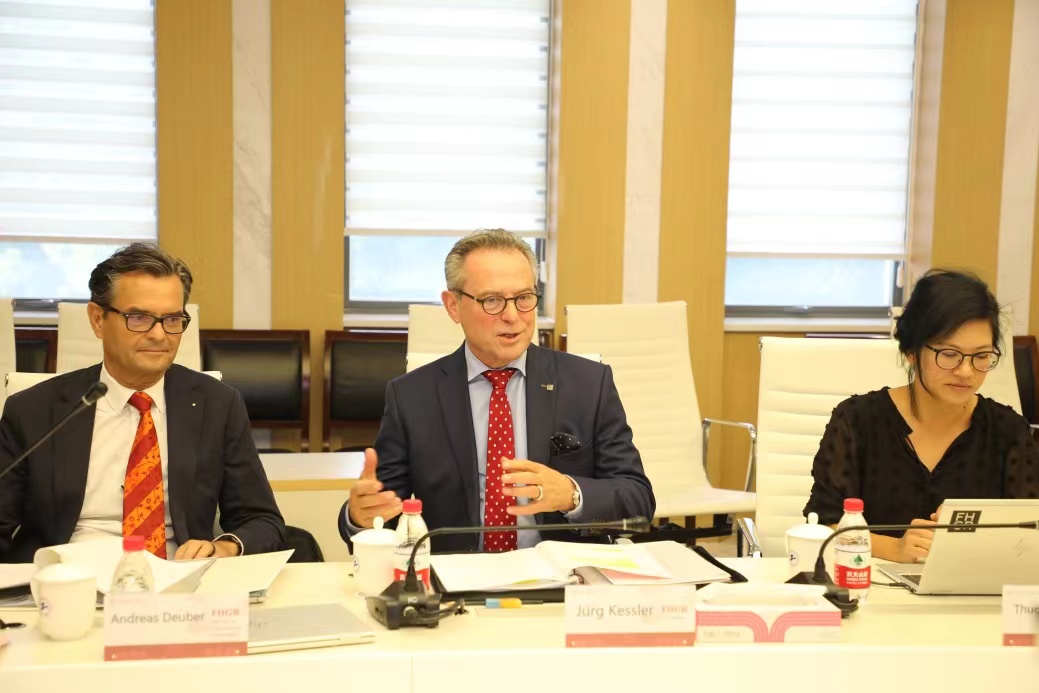 格劳宾登应用科技大学Jürg Kessler校长回顾了中瑞合作办学项目走过的十年历程。他指出,十年以来,双方不断加深理解和互信,始终保持顺畅的沟通交流和友好协商,朝着双方共同的目标努力前行,期待两校下一步的全面合作。