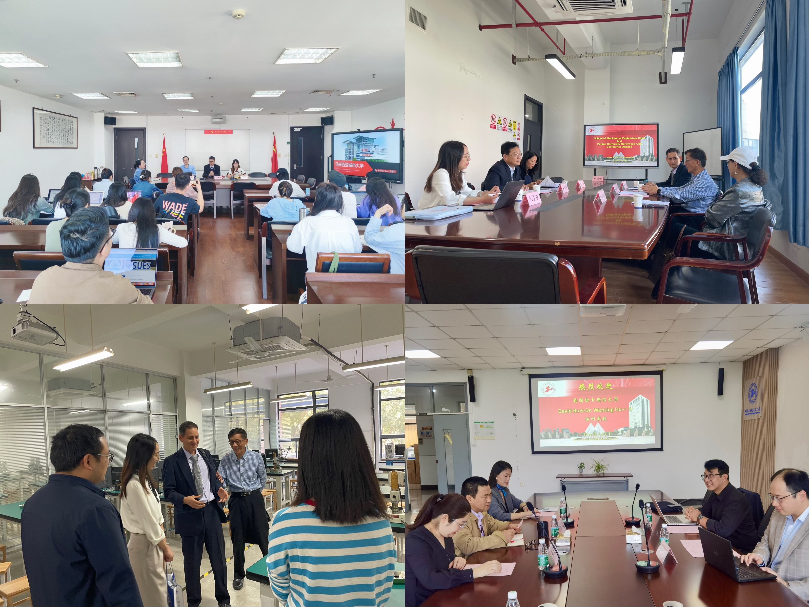2023全球合作伙伴周期间,英国纽卡斯尔大学、美国普渡大学西北校区、马来西亚城市大学等高校的相关学院教授、国际交流负责人等来访我校,与我校机械与汽车工程学院、电子电气工程学院、化学化工学院、马克思主义学院负责人及教授洽谈各类师生交流、联合科研等合作项目,拓宽合作领域,提升合作质量。