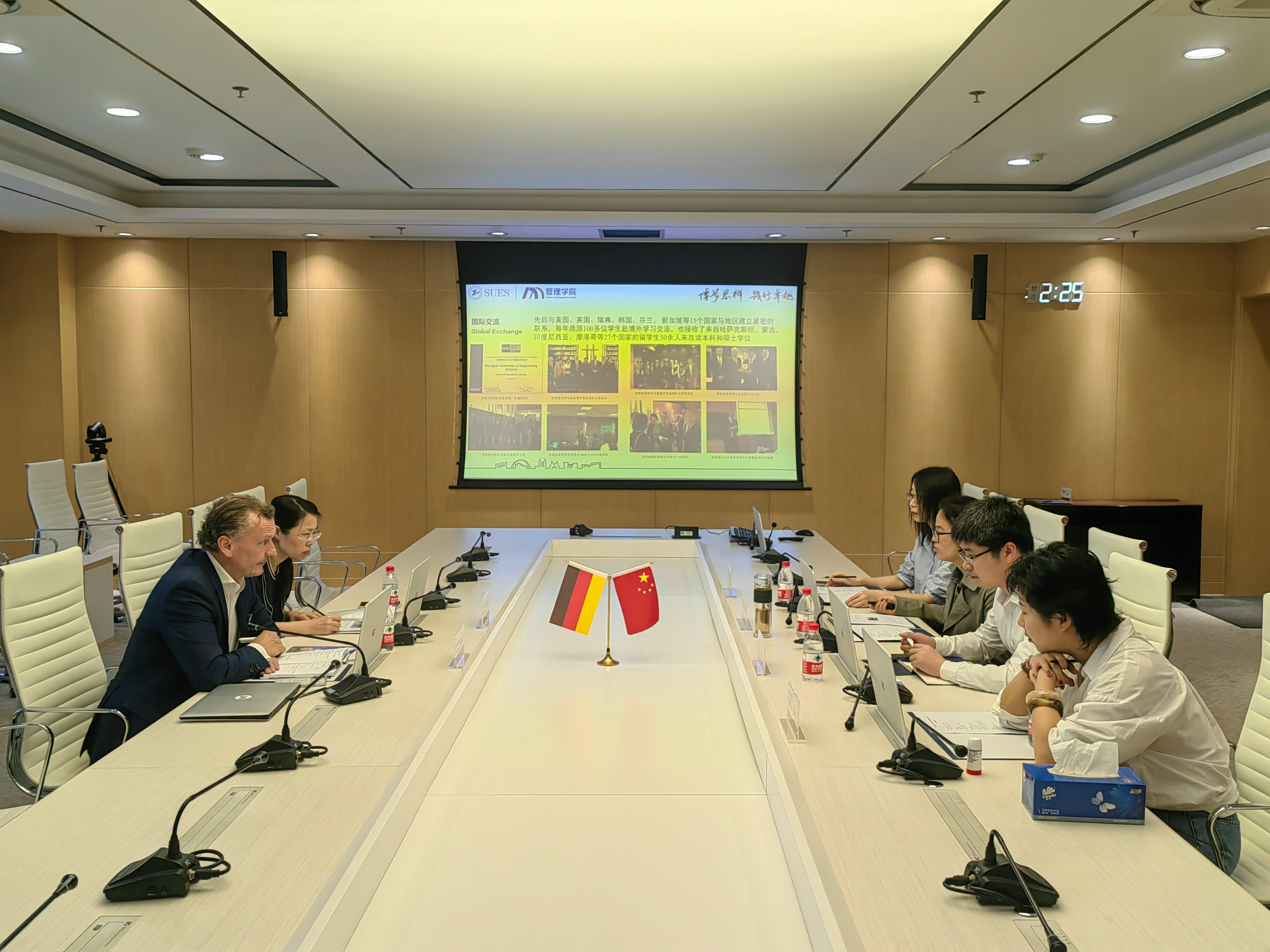 管理学院邱梦华副院长在会上简要介绍了学院的基本情况与专业特色,并与Kleiminger院长针对两校在MBA/MPA项目中开展合作的可能性展开讨论,双方在开展学生短期项目、学分互认项目等方面初步达成合作共识。